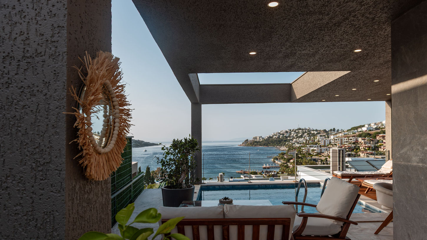 Aphrodite Villa is one of Marje's luxurious and elegantly designed accommodation units. This villa offers a spacious living environment with a 270 m² 3+1 duplex house and a large terrace area. It is equipped with three bedrooms, spacious living room, three large bathrooms and a fully equipped kitchen. In this villa where you can enjoy the blue waters and nature of the Aegean, you can enjoy luxury and comfort while cooling off in the private pool.